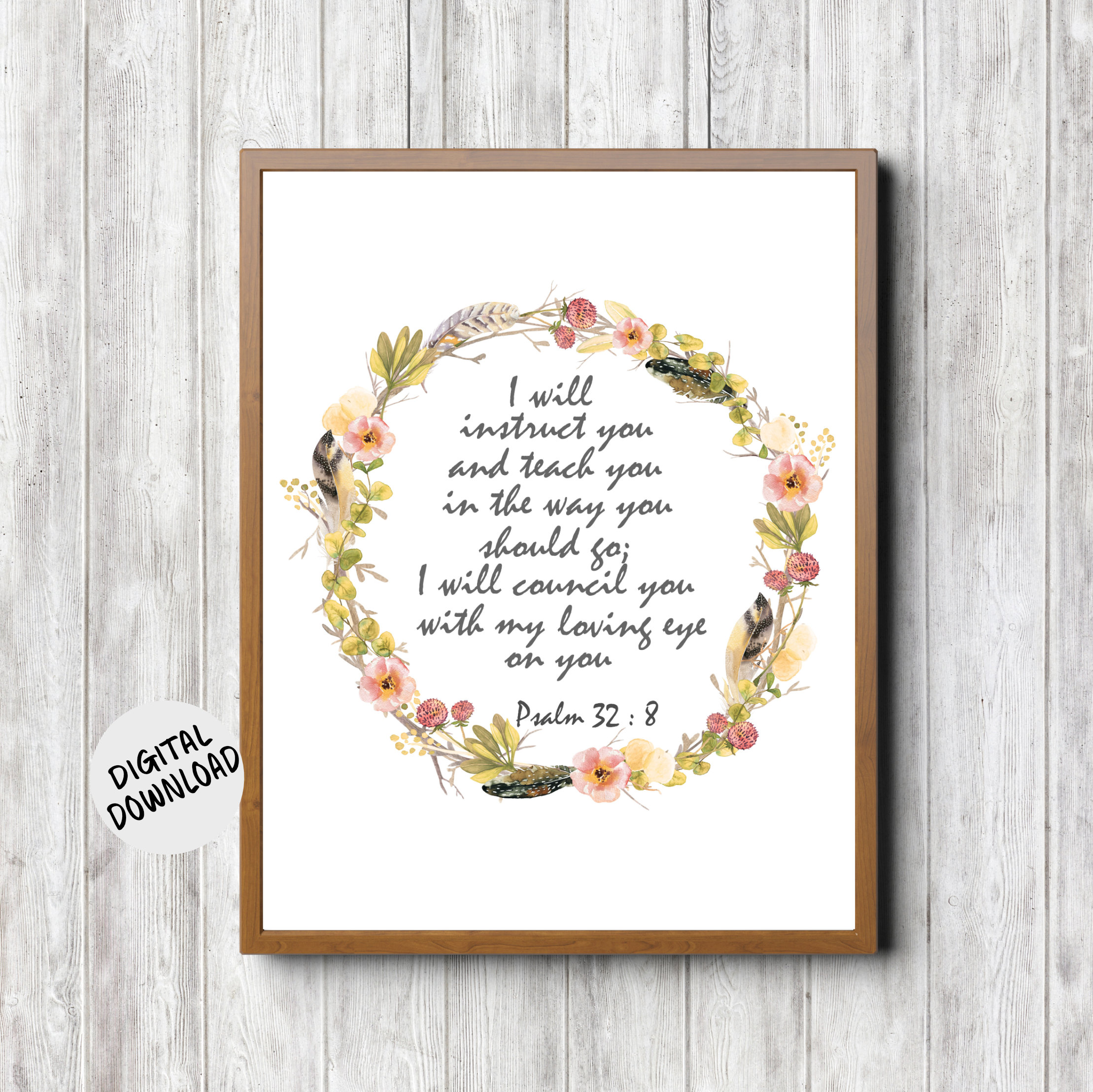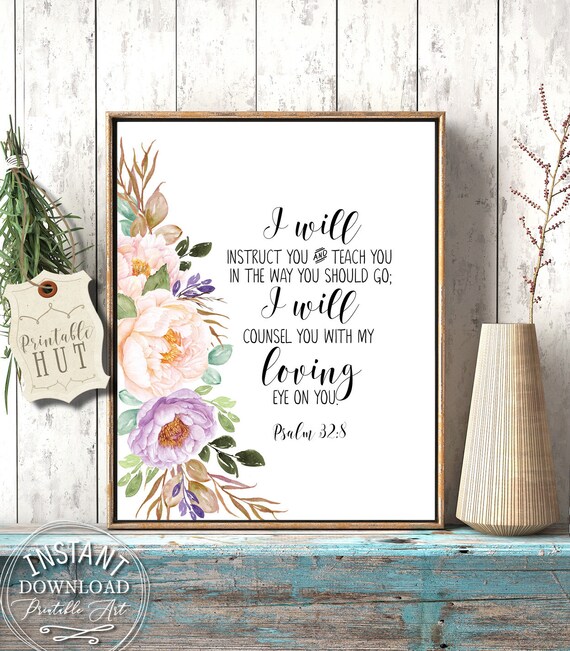 Psalm 32 8 Rustic Watercolor Wreath Printable Scripture Etsy